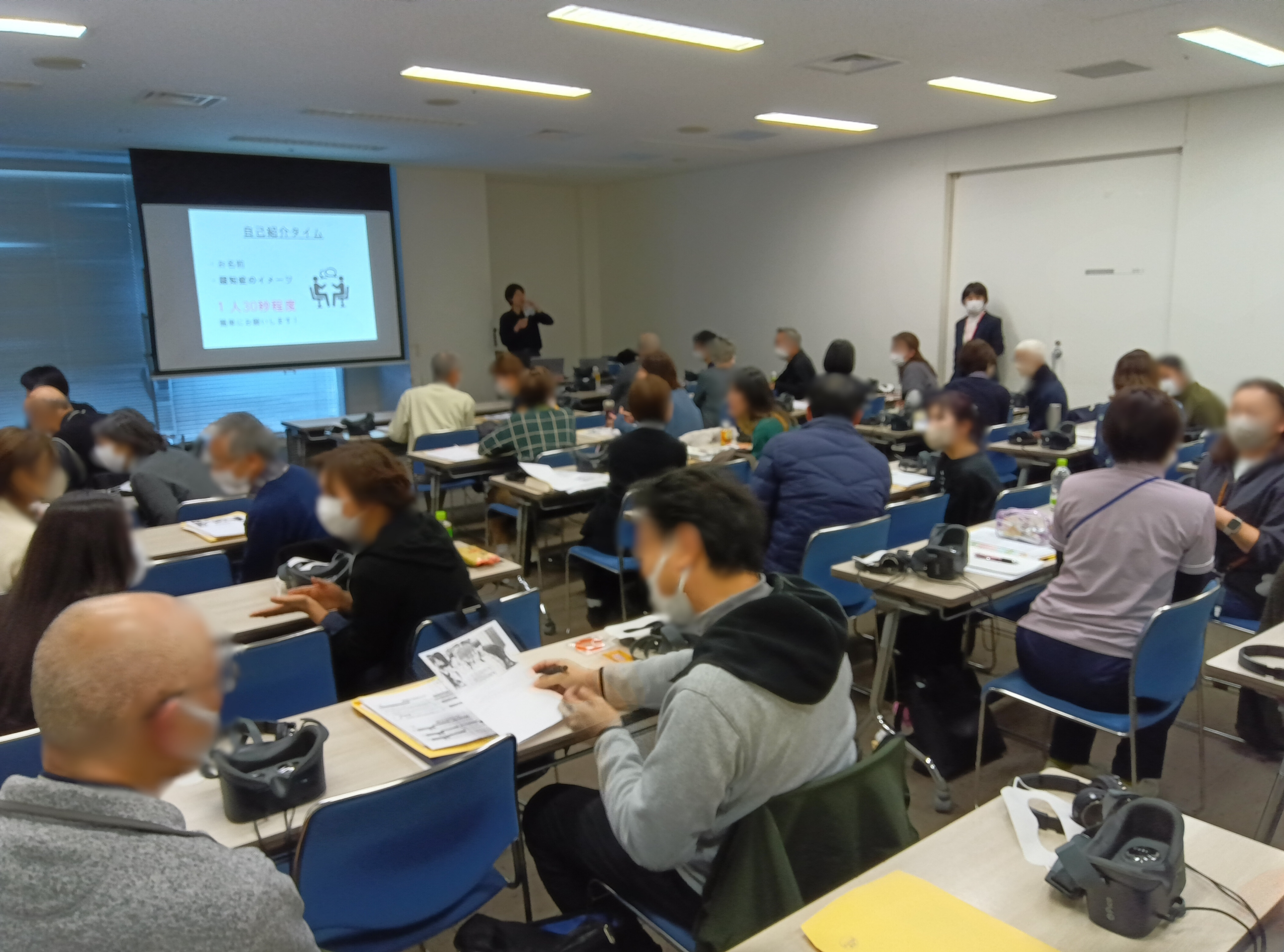 会場がある浦和駅周辺は、「十二日まち」の影響もあってか、とても賑わっていました。そのような中36名の方に参加いただきました。認知症サポーター養成講座の概要をお話しした後、いよいよVRを装着しての講座の開催です。