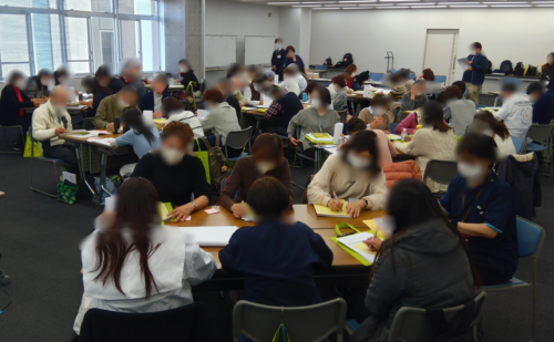 講座は、認知症サポーターからステップアップし、地域で認知症の人とその家族を支える活動に取り組む「おれんじパートナー」を養成する内容です。 53 名に参加いただき、外に負けないくらいの賑わいでした!